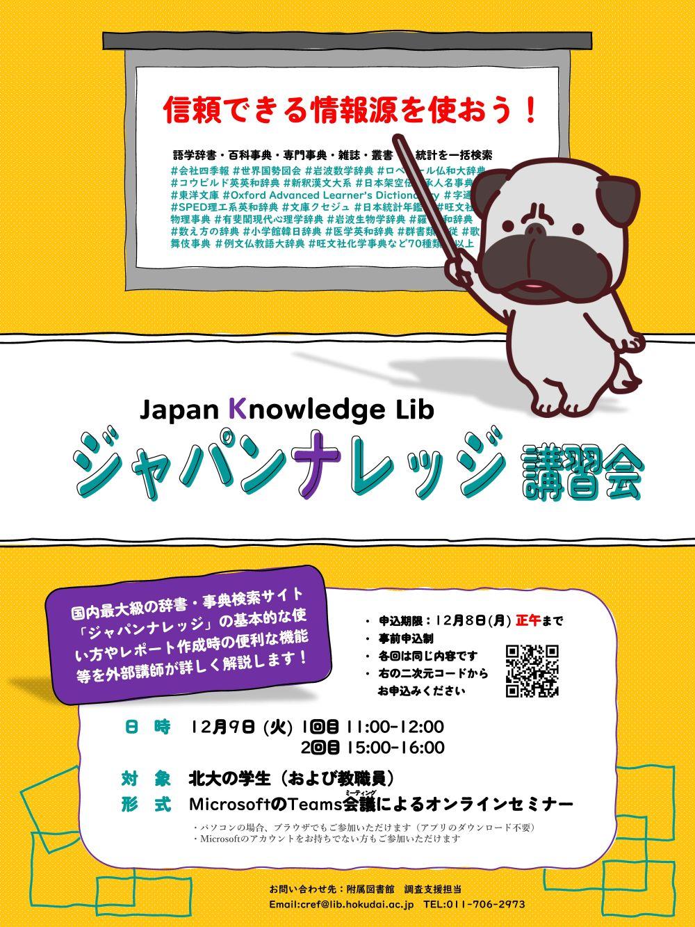 ジャパンナレッジ(JapanKnowledgeLib) は、日本語や英語にとどまらないさまざまな言葉の辞典に始まり、史実を深く掘り下げた歴史事典から、物理や化学・生物学といった自然科学系の事典、「東洋文庫」などの叢書まで、日本有数の百科事典や辞書類が持つ膨大な知識情報を収録したオンラインデータベースです。皆様のご参加をお待ちしております。