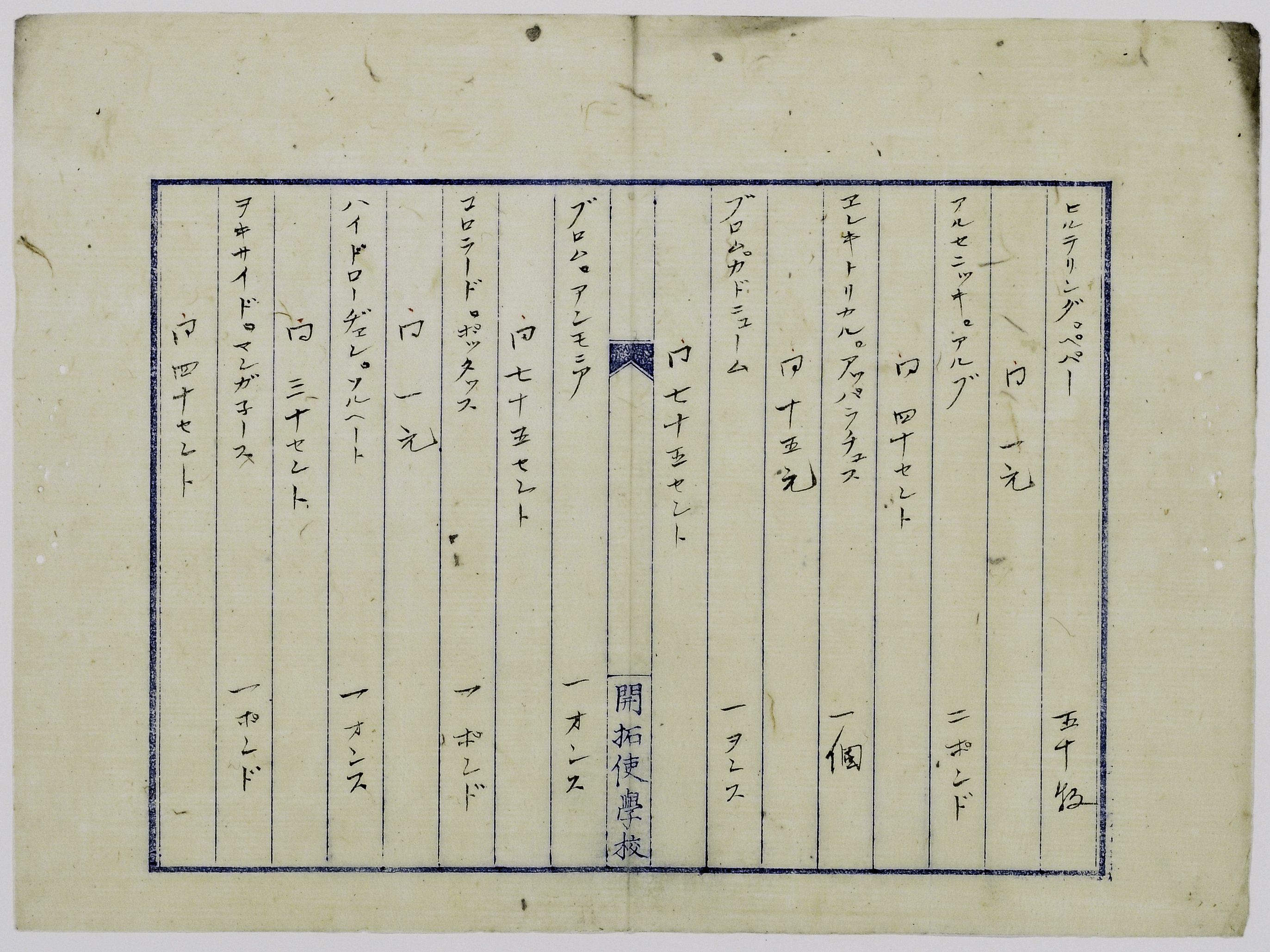 〔開拓使仮学校用〕化学、物理実験器具薬品代価見積書(73.50ドル)(和訳) ( 2 / 7 ページ)
