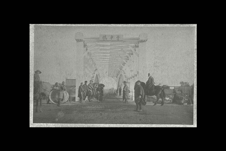 正面梁上に「豊平橋」の札を掲ぐ。