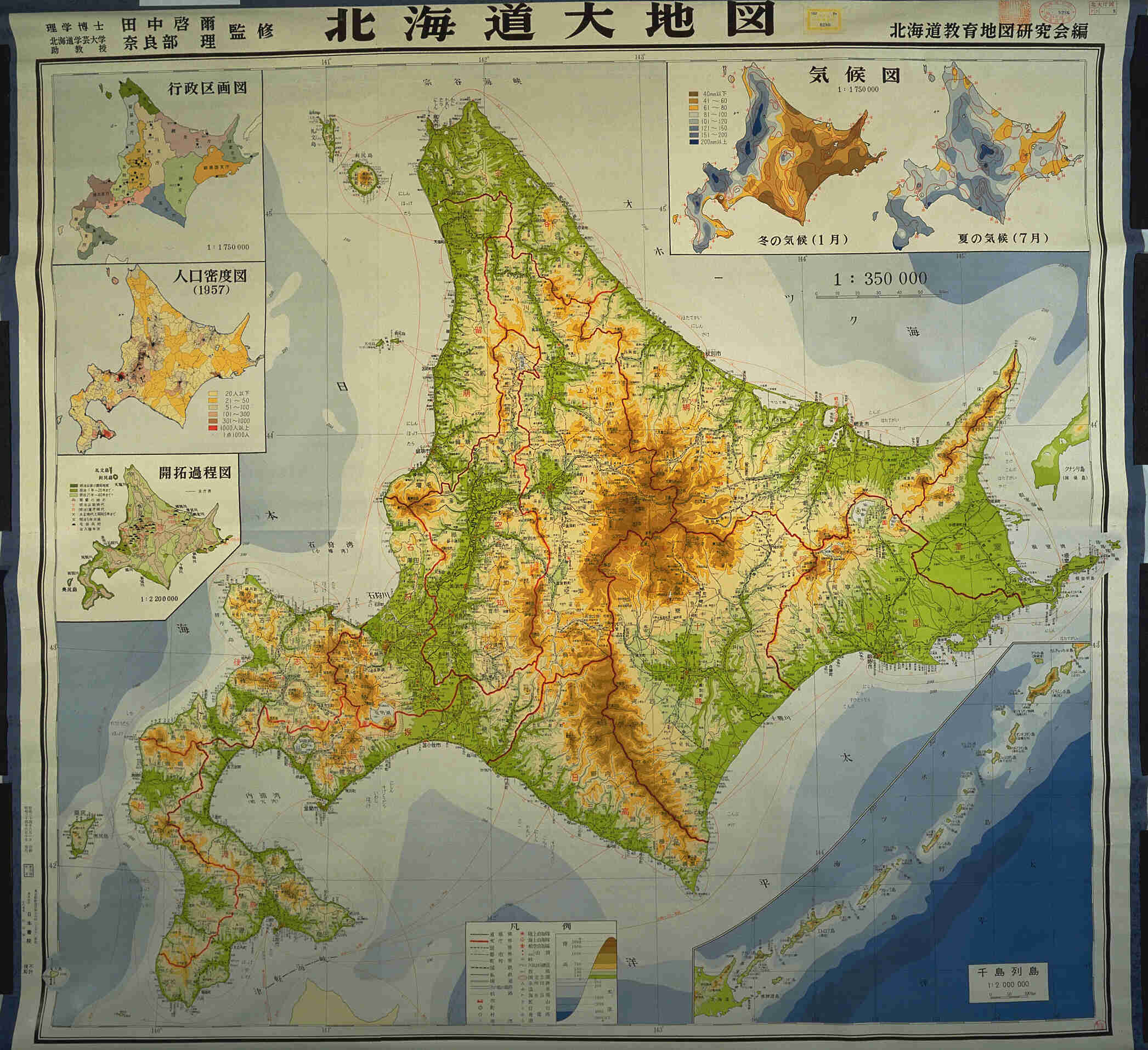 行政区画図、人口密度図、開拓過程図、気候図、千島列島(1:200万)等を付す。